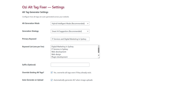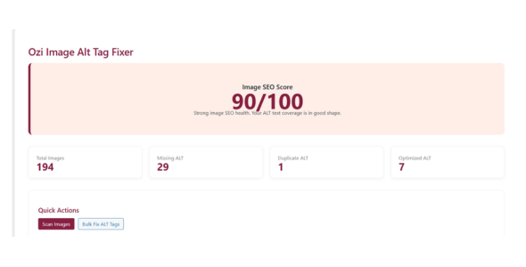 Ozi Image Alt Tag Fixer automatically scans your website, detects missing ALT tags, and generates optimized ALT text using intelligent rules.