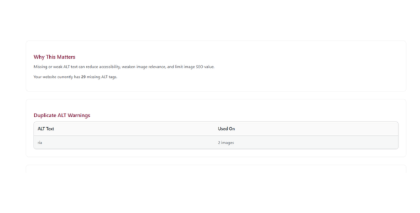 Identify duplicate ALT text across images to improve search clarity and accessibility.